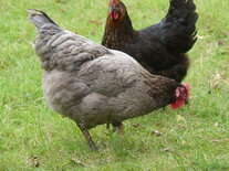 In unserer Voliere haben wir 3 Pfauen und Zwerghühner.